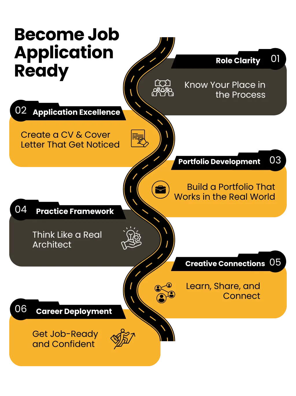 Join the Inner Sanctum Membership and access everything you need to build a job-winning portfolio, master the architecture job application process, and confidently transition into professional practice.
